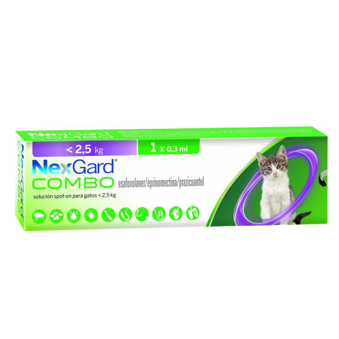 • Protección total en una sola aplicación: combate pulgas, garrapatas, ácaros del oído y parásitos internos.